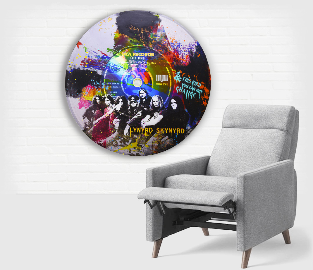VINYLGRAPH is a 3D popart record that is 1 inch thick and floats off the wall 1.5 inches with a hole in the center open to the wall behind