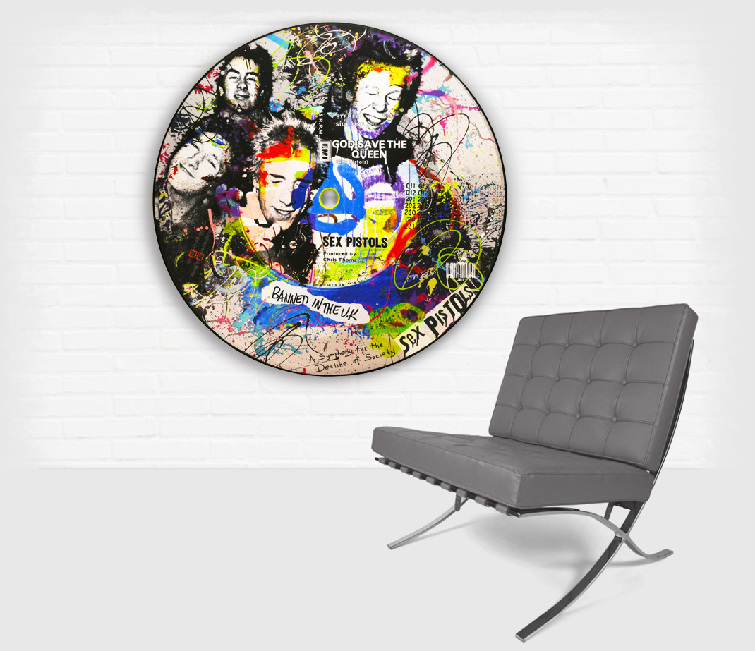 VINYLGRAPH is a 3D popart record that is 1 inch thick and floats off the wall 1.5 inches with a hole in the center open to the wall behind