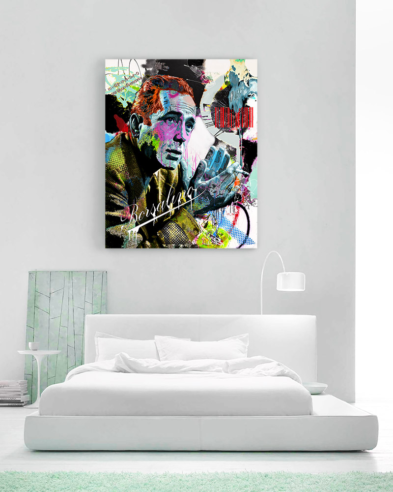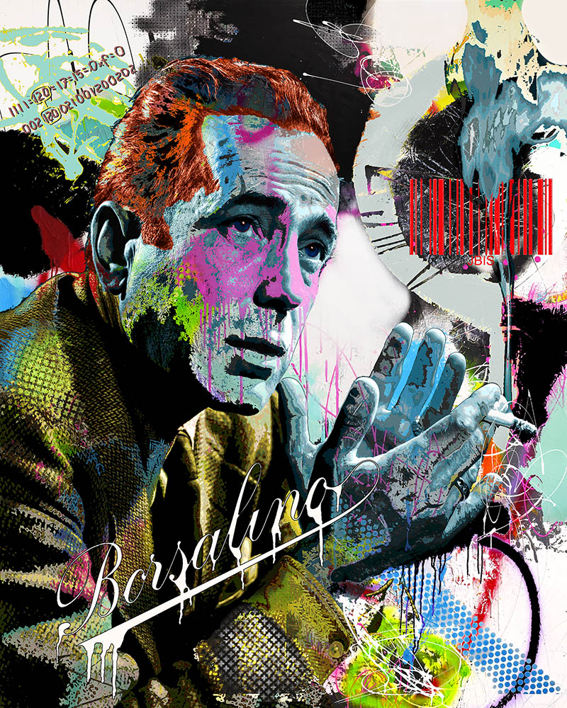 “BOGART” 45 by 56 inches, acrylic - mixed media & GD on canvas mounted to hardpanel coated in resin (2019)