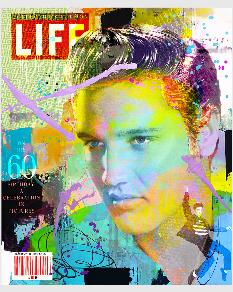 “60ELVIS” 40 by 48 inches, acrylic - mixed media & GD on canvas mounted to hardpanel coated in resin (2019)