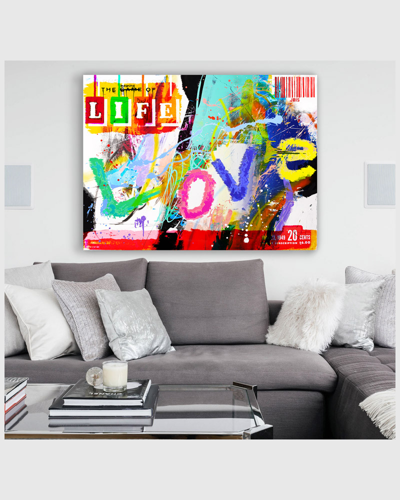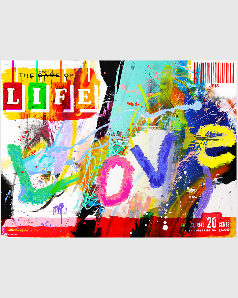 “LOVE” 48 by 36 inches, acrylic - mixed media & GD on canvas mounted to hardpanel coated in resin (2019)