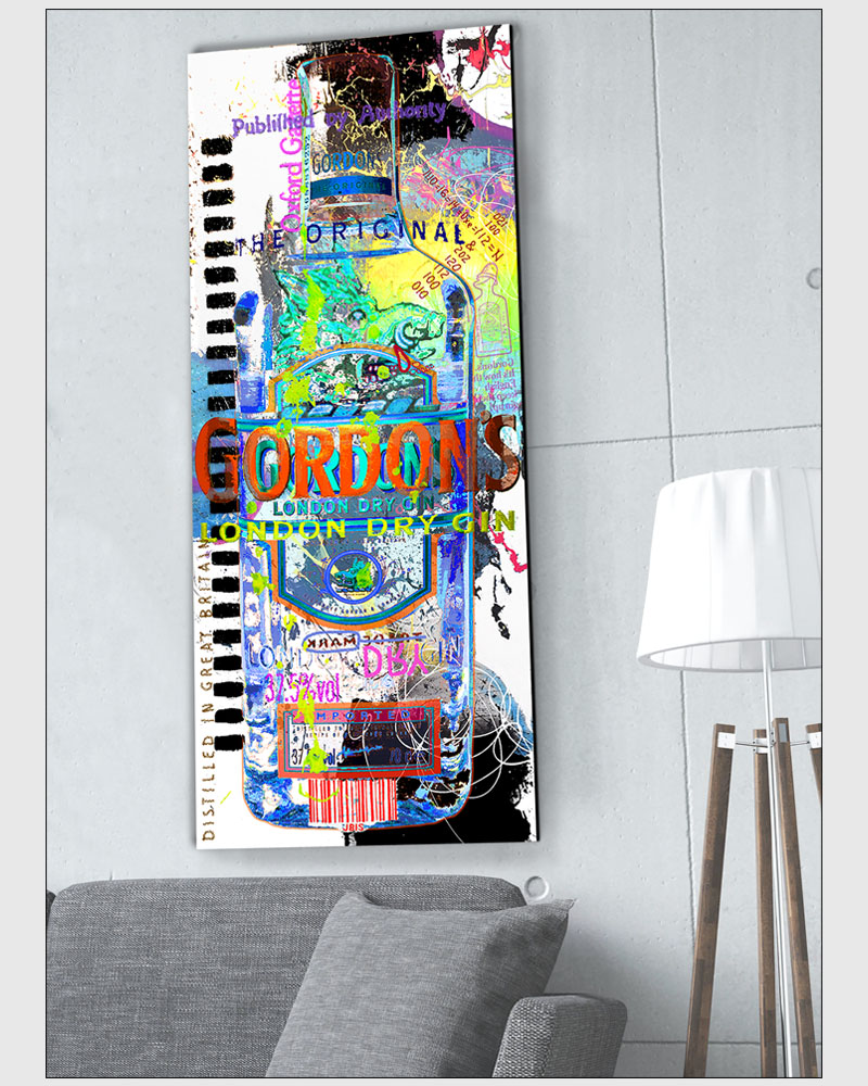 “GORDONS” 24 by 60 inches, acrylic - mixed media & GD on canvas mounted to hardpanel coated in resin (2019)