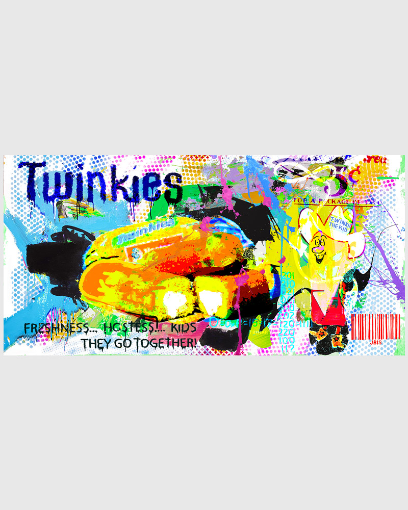 “TWINKIE THE KID” 48 by 24 inches, acrylic - mixed media & GD on canvas mounted to hardpanel coated in resin (2020)