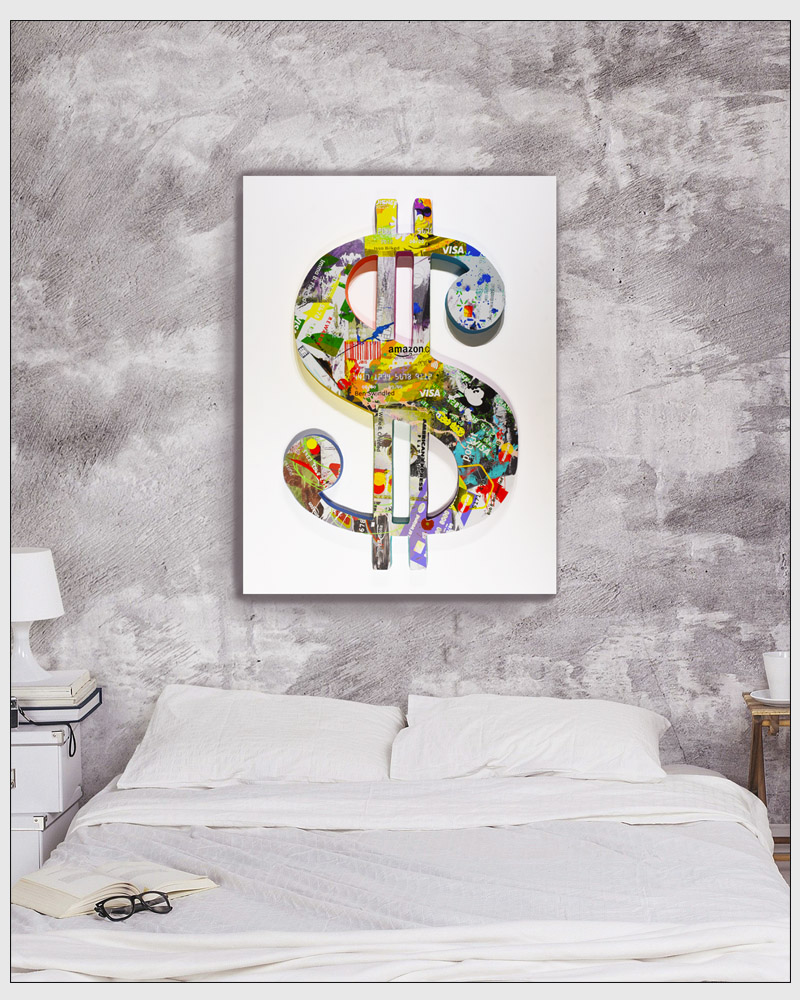 The Modern Visage series utilizes an area of the mixed media painting that is a 2.5 inch deep cutout or projection to create a stunning 3D wall sculpture