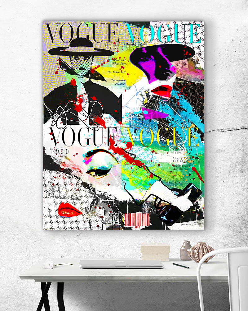 “4VOGUE” 36 by 48 inches, acrylic - mixed media & GD on canvas mounted to hardpanel coated in resin (2019)