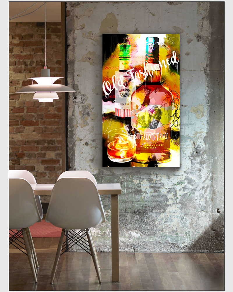 “OLD FASHION” 28 by 48 inches, acrylic - mixed media & GD on canvas mounted to hardpanel coated in resin (2019)