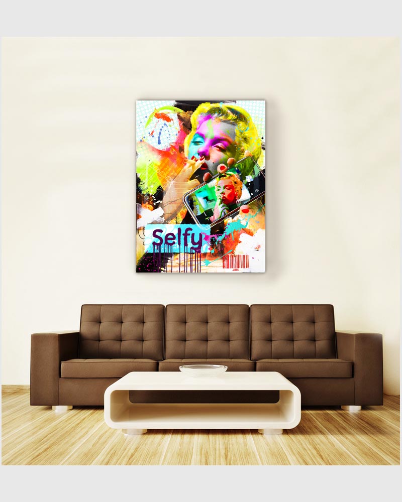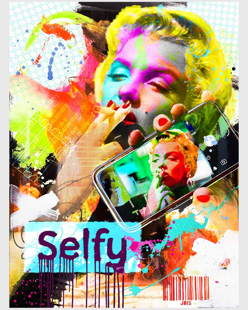 “SELFY MARILYN” 36 by 48 inches, acrylic - mixed media & GD on canvas mounted to hardpanel coated in resin (2019)